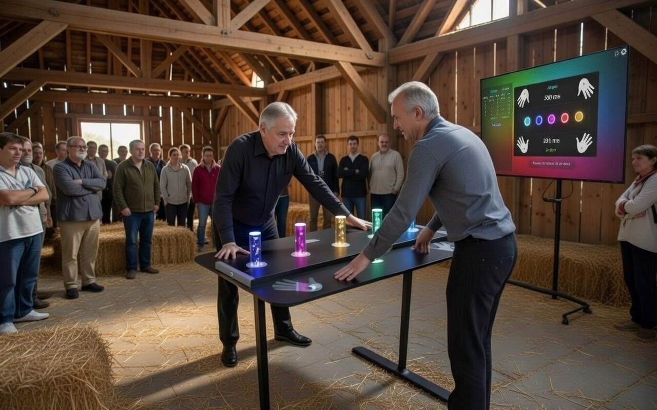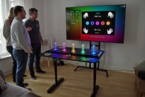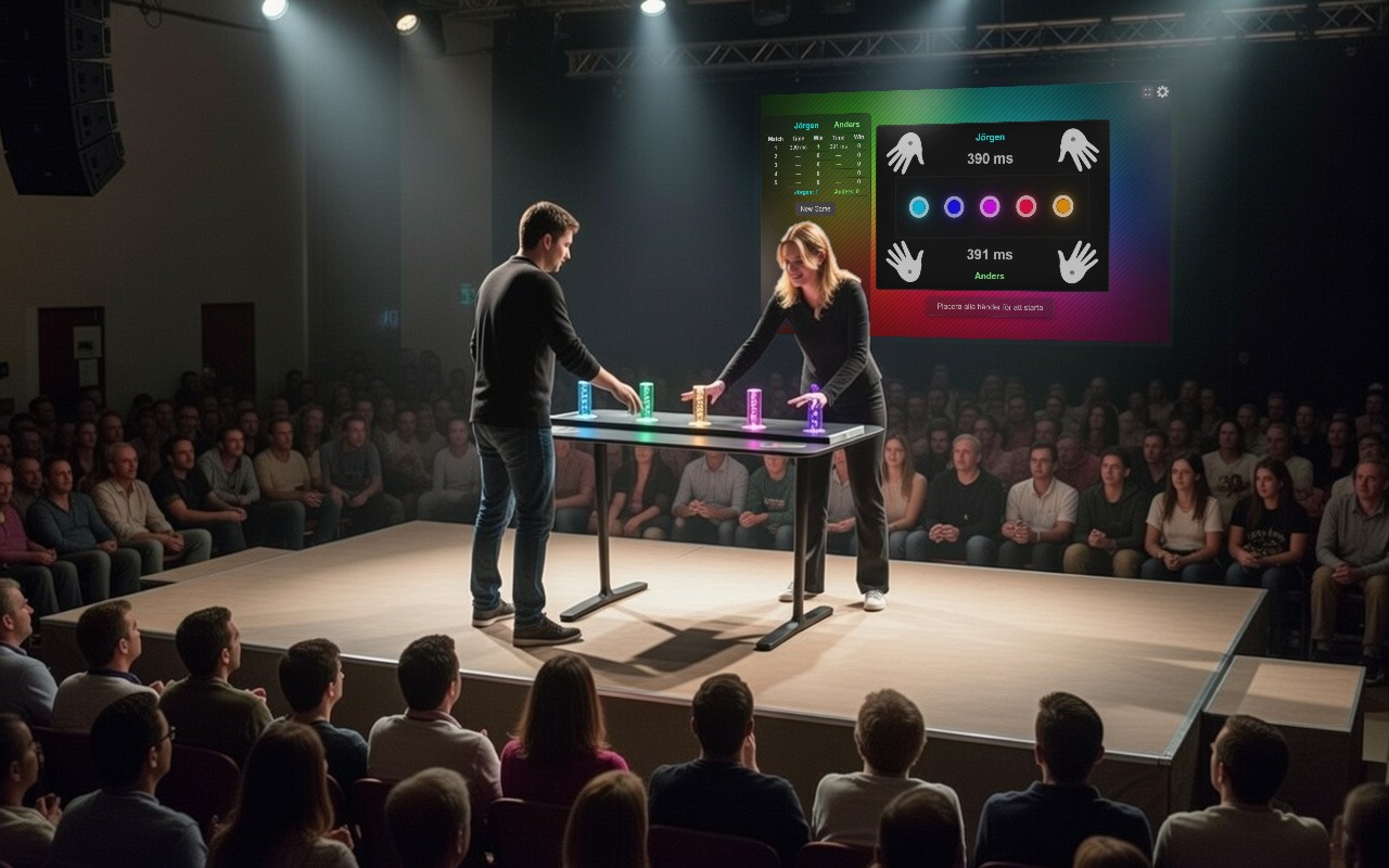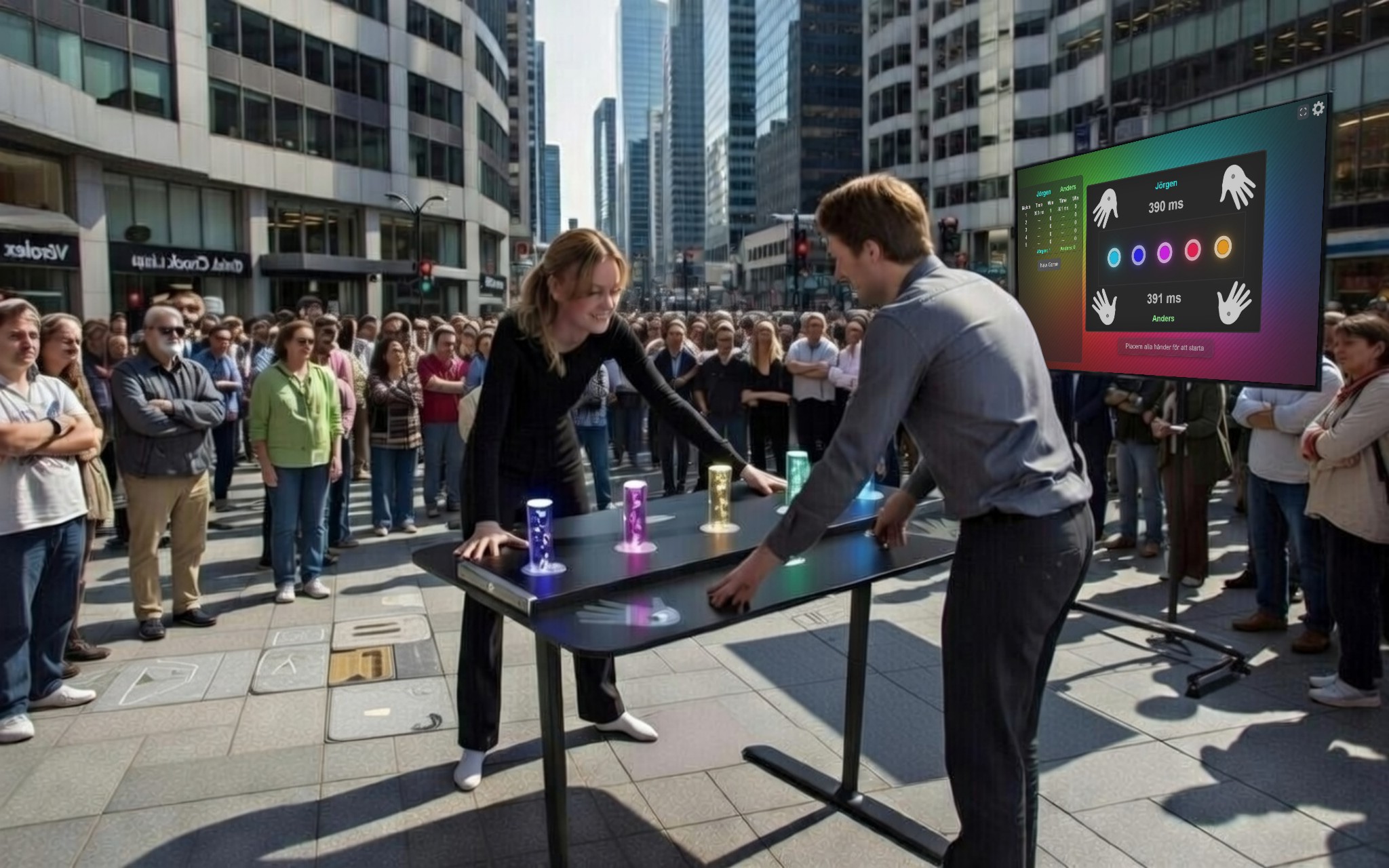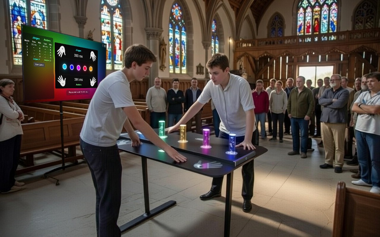 håller händerna på sensorerna bler det oavgjort, och spelet måste spelas om.