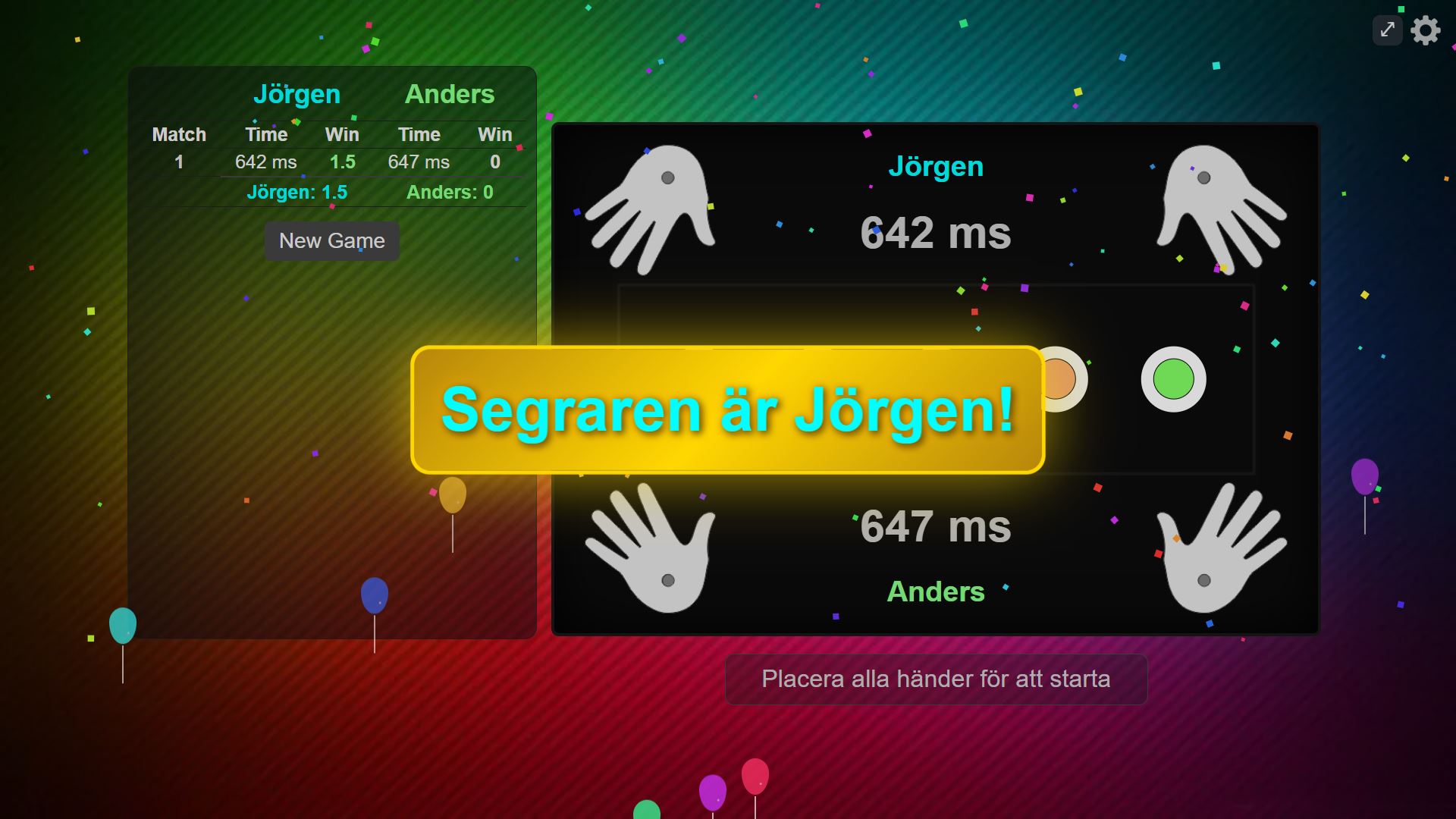 Reaktionstiden visas på skärmen